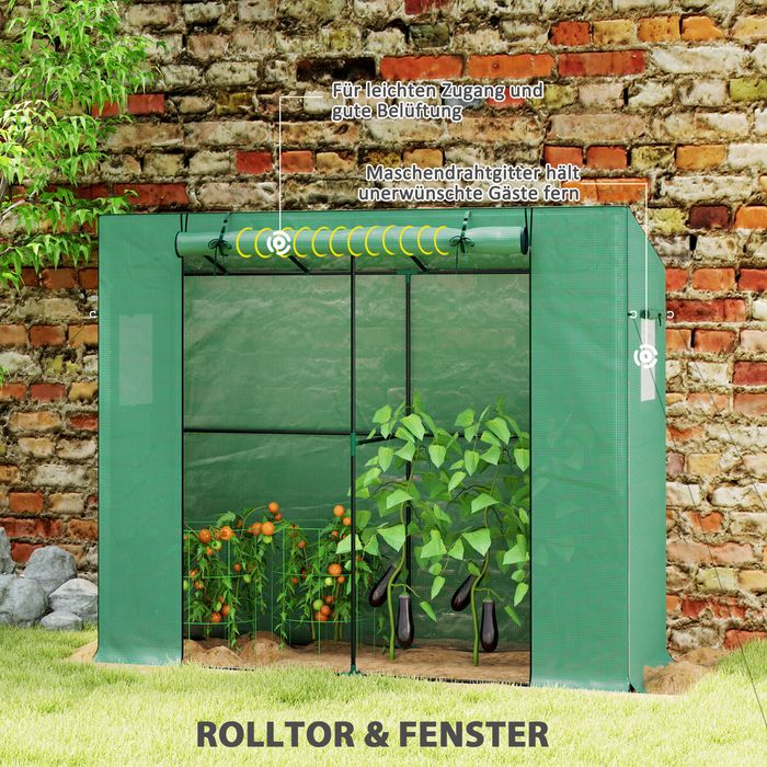 Mini-Gewächshaus, Anlehn-Gewächshaus, Rolltür, Netzfenster, UV-beständig, Grün