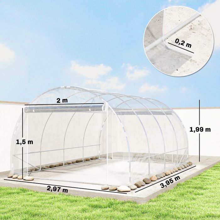 Polytunnel-Gewächshaus, begehbar, verzinkter Stahlrahmen, UV-beständig, transparent, 297x395cm