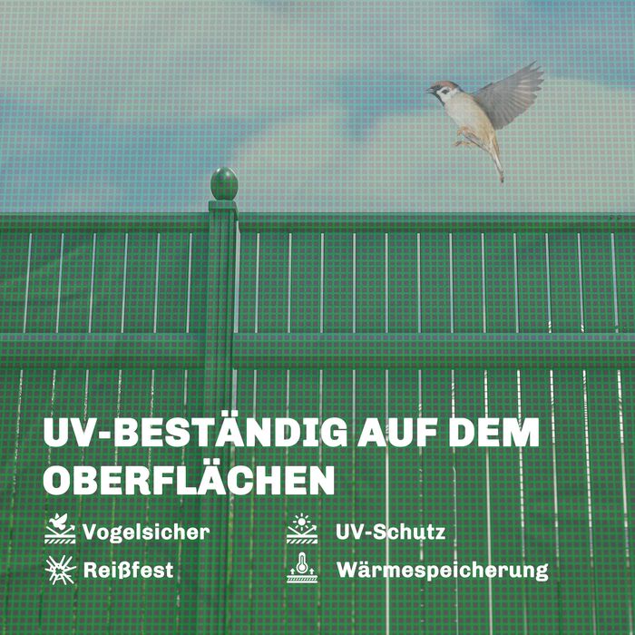 - Die 140 g/m² PE-Abdeckung mit UV-Schutz schützt Pflanzen vor Sonnenschäden