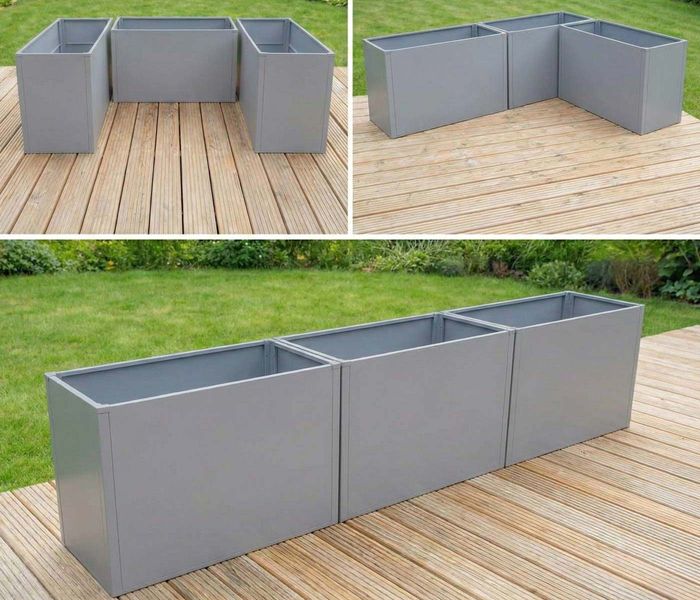 - Set aus drei modernen Hochbeeten aus verzinktem, pulverbeschichtetem Stahl mit ca. 1.020 l Volumen - rostgeschützt, kratzfest und pflegeleicht. Ideal für Terrasse oder Garten mit elegantem und zeitlosem Design.