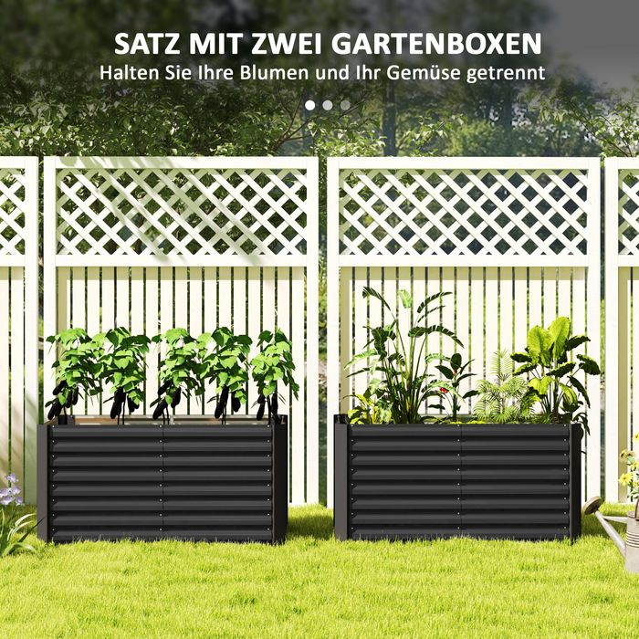 Hochbeet 2er-Set, Pflanzkasten, extra tief, Metall, 120x60x60cm Dunkelgrau