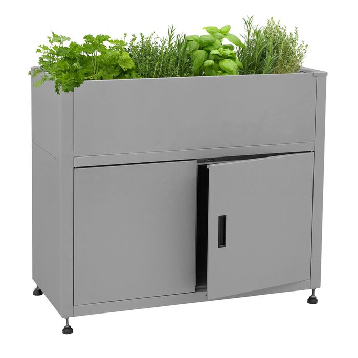 Besonders praktisch ist der grosszügige Stauraum unterhalb der Pflanzfläche, der ausreichend Platz für Gartengeräte, Erde, Töpfe oder Zubehör bietet und so für Ordnung und Übersicht sorgt. Durch die angenehme Arbeitshöhe ermöglicht das Hochbeet rückenschonendes Gärtnern, ohne mühsames Bücken oder Knien – ideal für langes und entspanntes Arbeiten an den Pflanzen. Mit diesem Metallhochbeet schaffen Sie nicht nur optimale Bedingungen für Gemüse, Kräuter oder Blumen, sondern auch eine aufgeräumte, stilvolle Gartengestaltung. Seine Kombination aus Funktionalität und Komfort macht es zu einer lohnenden Investition für alle, die Wert auf Qualität, Langlebigkeit und eine ansprechende Optik legen.