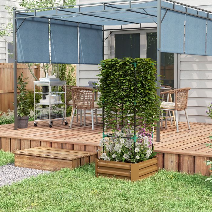 Hochbeet mit Rankgitter, offener Boden, wetterbeständig, 61x61x140cm, Braun