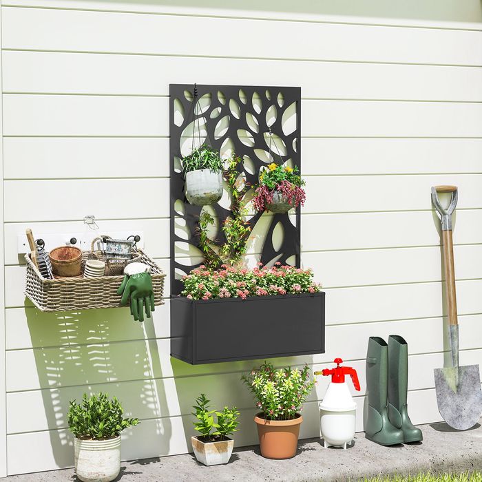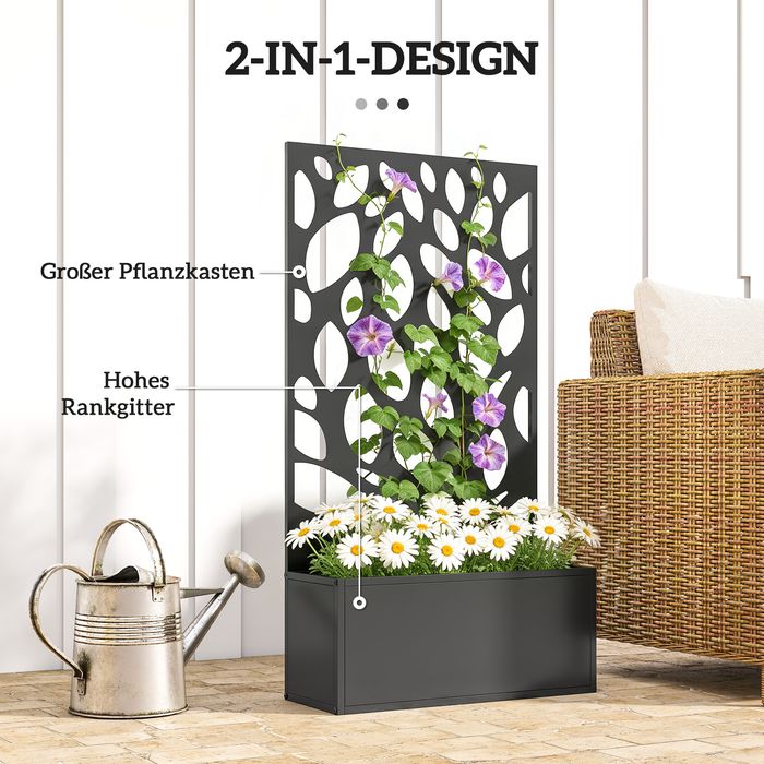 Hochbeet mit Rankgitter, Wandmontage oder freistehend, Pflanzkasten mit Sichtschutz