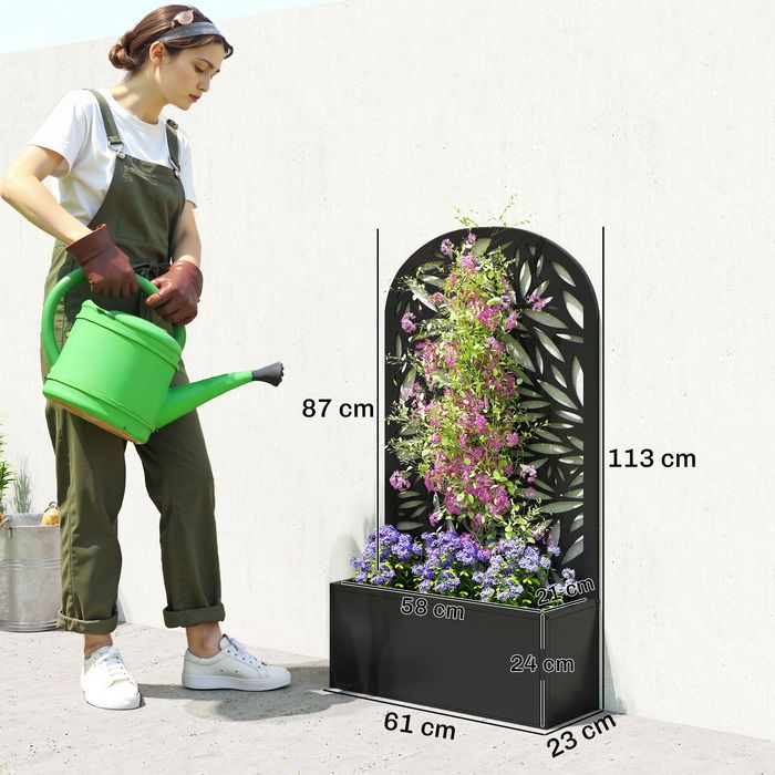 - Metallstruktur: Dank einer wetterbeständigen Pulverbeschichtung ist dieser erhöhte Blumenkasten mit Rankgitter äusserst robust und bestens für den ganzjährigen Einsatz im Aussenbereich geeignet.