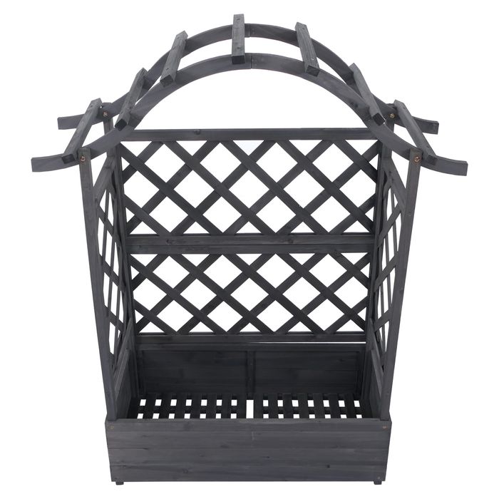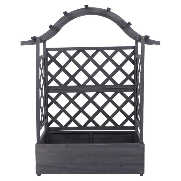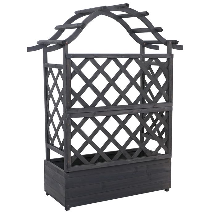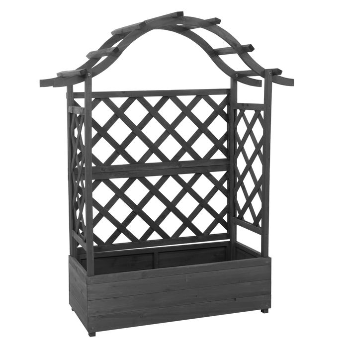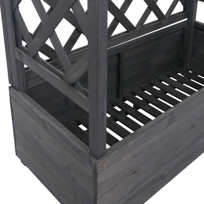 Hochbeet P66, Pflanz-/Blumenkasten Pflanzkübel Rankgitter Holz FSC® 138x110x44cm, anthrazit-grau