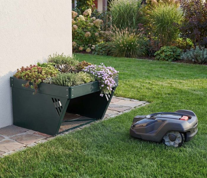 Diese hochwertige Mährobotergarage vereint Funktionalität und Design zu einer stilvollen Lösung für jeden Garten. Sie bietet Ihrem Mähroboter zuverlässigen Schutz vor Regen, Sonne und Schmutz und sorgt dafür, dass das Gerät stets optimal geschützt und einsatzbereit bleibt. Der integrierte Pflanzkasten verleiht der Garage einen dekorativen Mehrwert und schafft eine harmonische Verbindung zwischen Technik und Natur. Ob mit Hauswurz, Kräutern oder Zierpflanzen bepflanzt - die obere Fläche lässt sich individuell gestalten und sorgt für eine moderne, grüne Gartengestaltung. Dank der integrierten Ablauflöcher wird Staunässe effektiv verhindert, sodass die Pflanzen optimal gedeihen und das Regenwasser kontrolliert abfliessen kann. Das zeitlos elegante Design in klarer Formensprache fügt sich nahtlos in jedes Gartenambiente ein und setzt zugleich einen dezenten, modernen Akzent. Gefertigt aus robustem Metall überzeugt die Mährobotergarage durch ihre aussergewöhnliche Langlebigkeit und Pflegeleichtigkeit - selbst bei dauerhafter Witterungseinwirkung bleibt sie formstabil und farbbeständig. Stabile Querstreben im unteren Bereich sorgen zusätzlich für maximale Standfestigkeit und Stabilität, damit die Konstruktion auch bei Belastung sicher an ihrem Platz bleibt. Mit dem im Lieferumfang enthaltenen Befestigungsmaterial lässt sich die Garage fest im Boden verankern und steht somit sicher. Diese durchdachte Kombination aus Schutz, Funktion und Ästhetik macht die Mährobotergarage mit Pflanzkasten zu einem echten Blickfang im Garten und zu einer idealen Lösung für alle, die Wert auf Qualität, Design und Langlebigkeit legen.