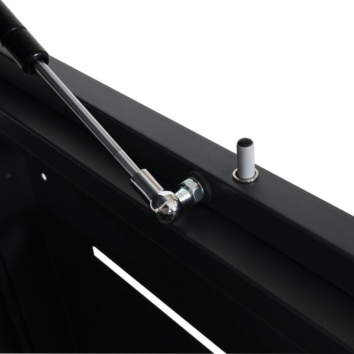 Deckel und Tür sind getrennt abschliessbar: sie verfügen jeweils über ein normales Schloss und ein Zahlenschloss, das individuell mit einem 4-stelligen Sicherheitscode eingestellt werden kann. Im Lieferumfang ist ein Schlüssel für alle Schlösser enthalten. Bitte achten Sie darauf, die Mülltonnenverkleidung mit denen im Lieferumfang enthaltenen Dübeln und Schrauben im Boden zu verankern, um deren Stabilität sicherzustellen.