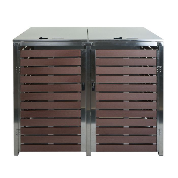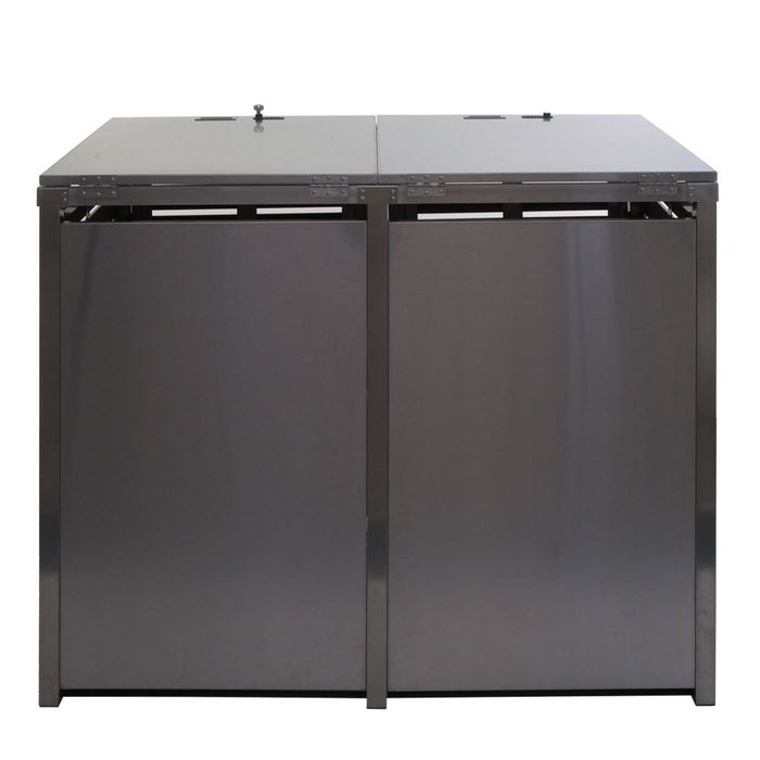 - Diese moderne Mülltonnenverkleidung ist nicht nur optisch ansprechend. Neben der abschliessbaren Tür und einem sehr stabilen Gehäuse, ist der Deckel dieser Mülltonnenverkleidung mit Gasdruckfedern ausgestattet.