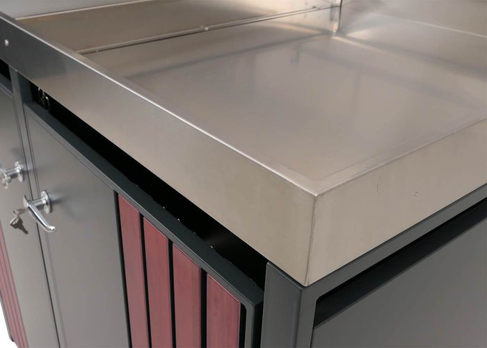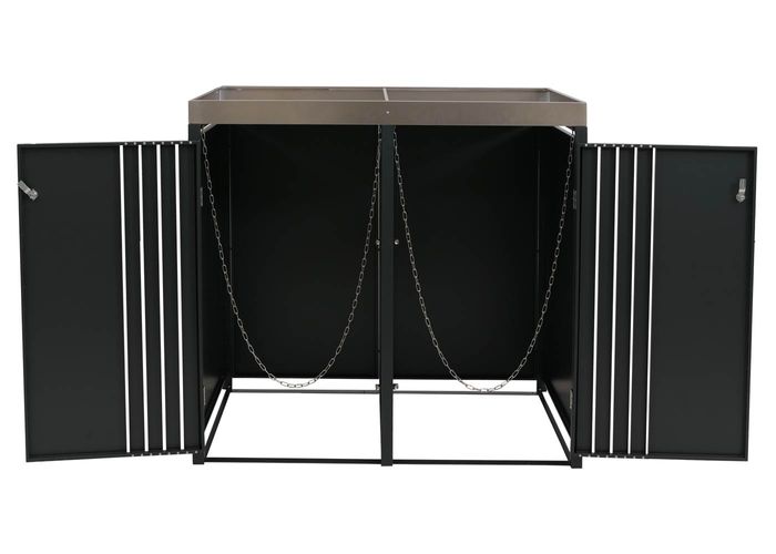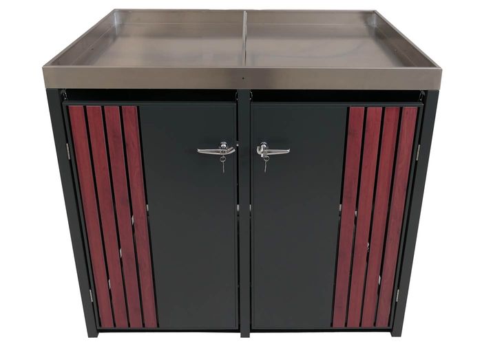 - Diese moderne Mülltonnenverkleidung ist nicht nur optisch ansprechend. Neben den abschliessbaren Türen und einem sehr stabilen Gehäuse ist diese Mülltonnenverkleidung mit einem Pflanzkasten ausgestattet.