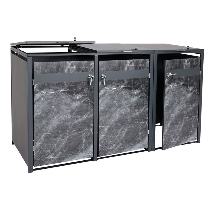 3er Mülltonnenverkleidung HWC-J82, Mülltonnenbox, erweiterbar, Metall 80kg, anthrazit - Marmor-Optik dunkel