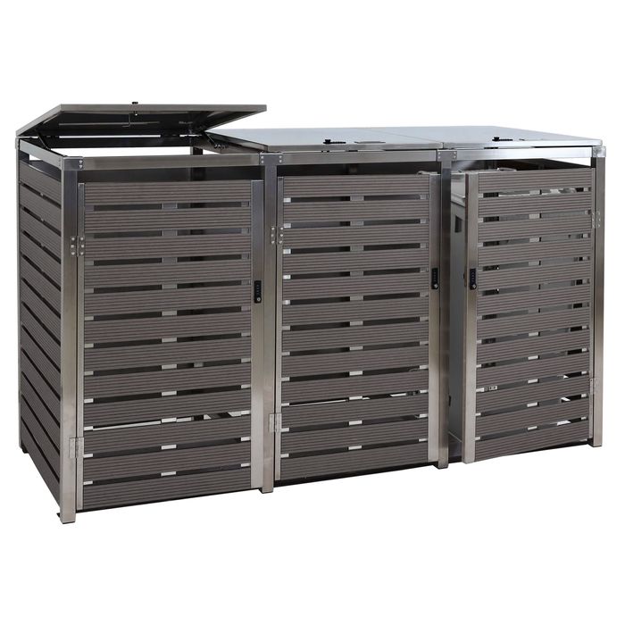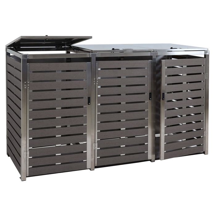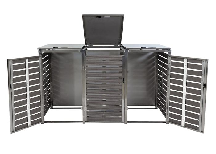 - Diese moderne Mülltonnenverkleidung ist nicht nur optisch ansprechend. Neben der abschliessbaren Tür und einem sehr stabilen Gehäuse, ist der Deckel dieser Mülltonnenverkleidung mit Gasdruckfedern ausgestattet.