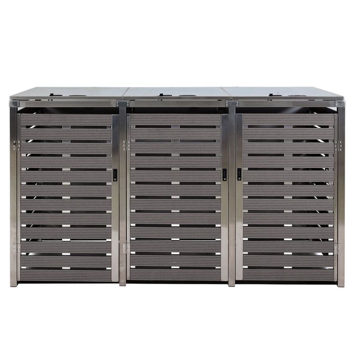 3er Mülltonnenverkleidung HWC-K14, 120x200x85cm WPC Edelstahl 104kg – anthrazit