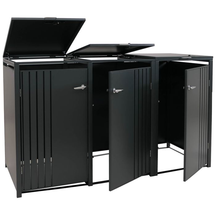 3er-Mülltonnenverkleidung HWC-O67, mit Deckel, Metall 122x200x84cm 83kg – anthrazit