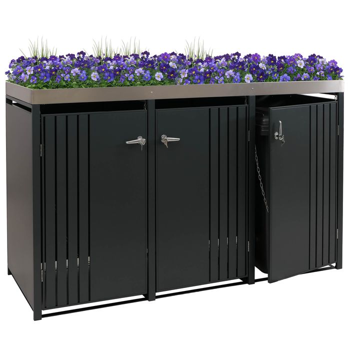 3er-Mülltonnenverkleidung HWC-O67, mit Pflanzkasten, Metall 125x196x84cm 75kg – anthrazit