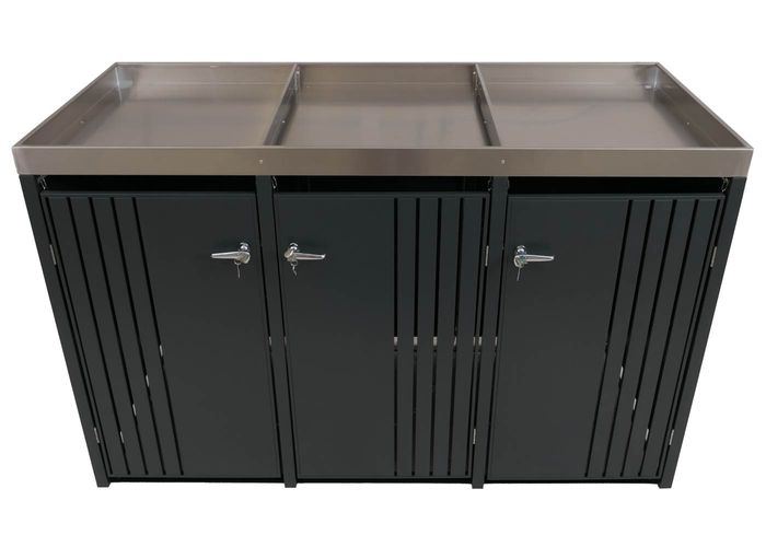 - Diese moderne Mülltonnenverkleidung ist nicht nur optisch ansprechend. Neben den abschliessbaren Türen und einem sehr stabilen Gehäuse ist diese Mülltonnenverkleidung mit einem Pflanzkasten ausgestattet.