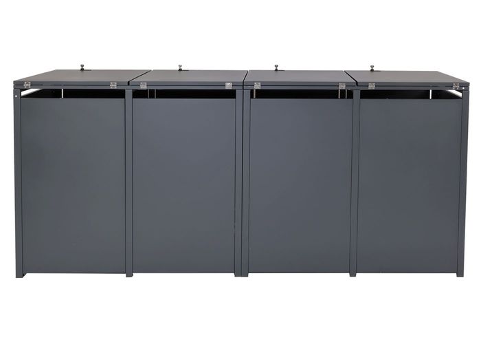 - Diese moderne Mülltonnenverkleidung ist nicht nur optisch ansprechend. Neben der abschliessbaren Tür und einem sehr stabilen Gehäuse, ist der Deckel dieser Mülltonnenverkleidung mit Gasdruckfedern ausgestattet.