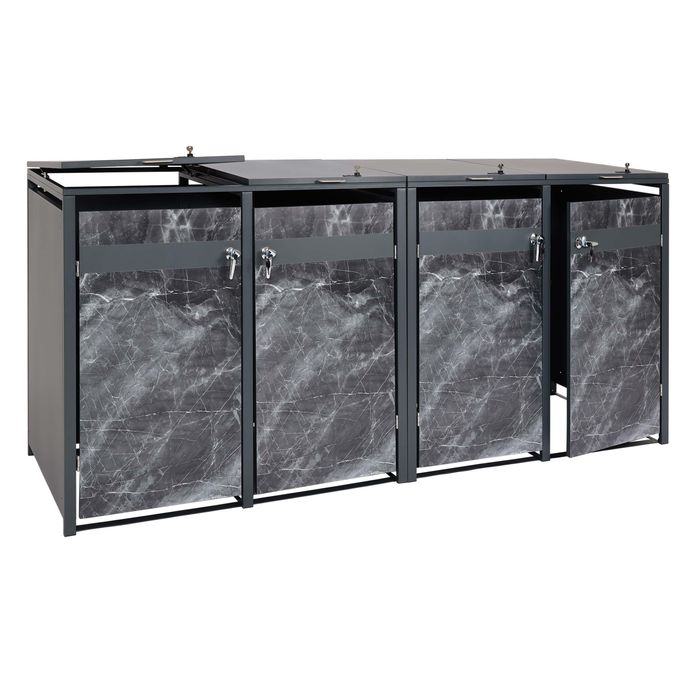 4er Mülltonnenverkleidung HWC-J82, Mülltonnenbox, erweiterbar, Metall 100kg, anthrazit - Marmor-Optik dunkel