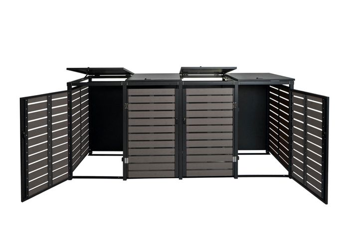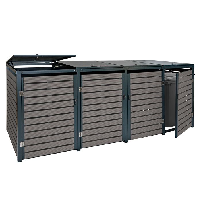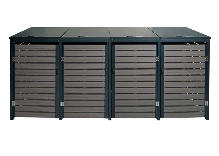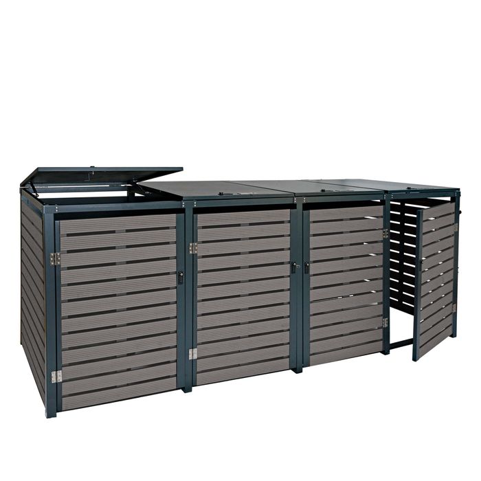 4er Mülltonnenverkleidung HWC-K14, 119x264x84cm WPC Metall 130kg – anthrazit
