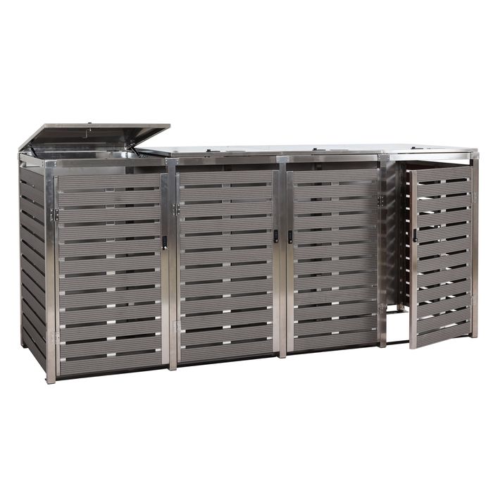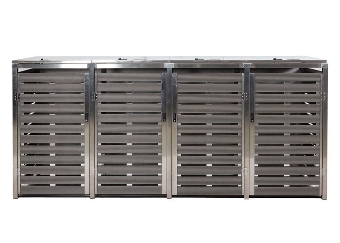 4er Mülltonnenverkleidung HWC-K14, 120x264x85cm WPC Edelstahl 128kg – anthrazit