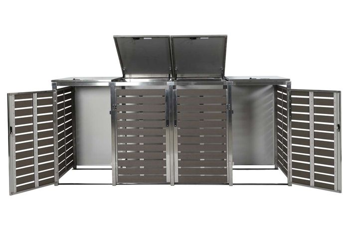 - Diese moderne Mülltonnenverkleidung ist nicht nur optisch ansprechend. Neben der abschliessbaren Tür und einem sehr stabilen Gehäuse, ist der Deckel dieser Mülltonnenverkleidung mit Gasdruckfedern ausgestattet.