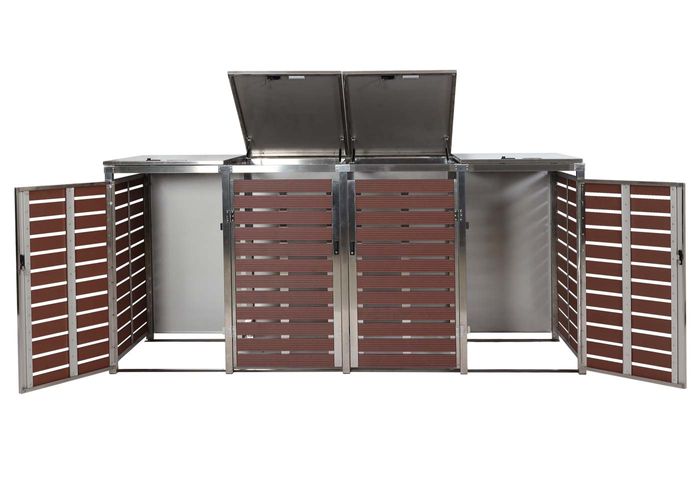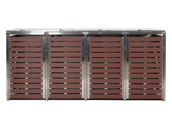 4er Mülltonnenverkleidung HWC-K14, 120x264x85cm WPC Edelstahl 128kg – Walnuss-Holzoptik
