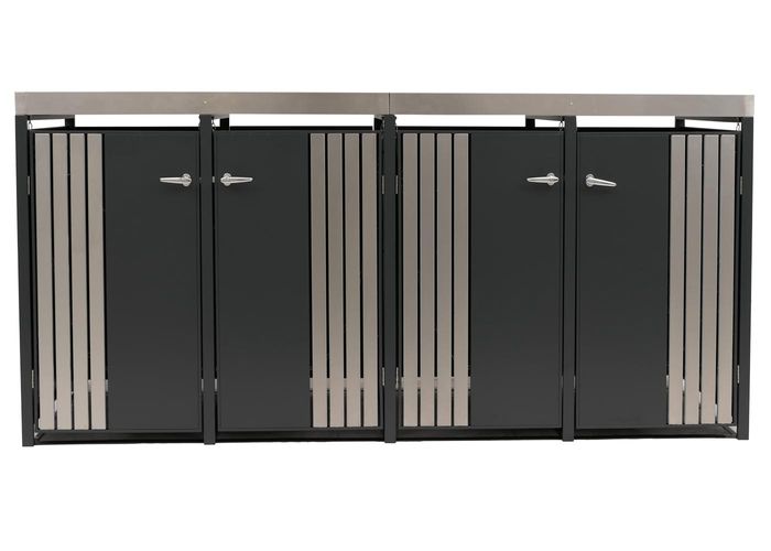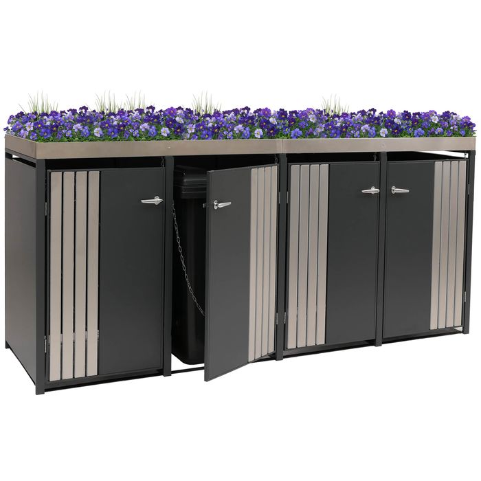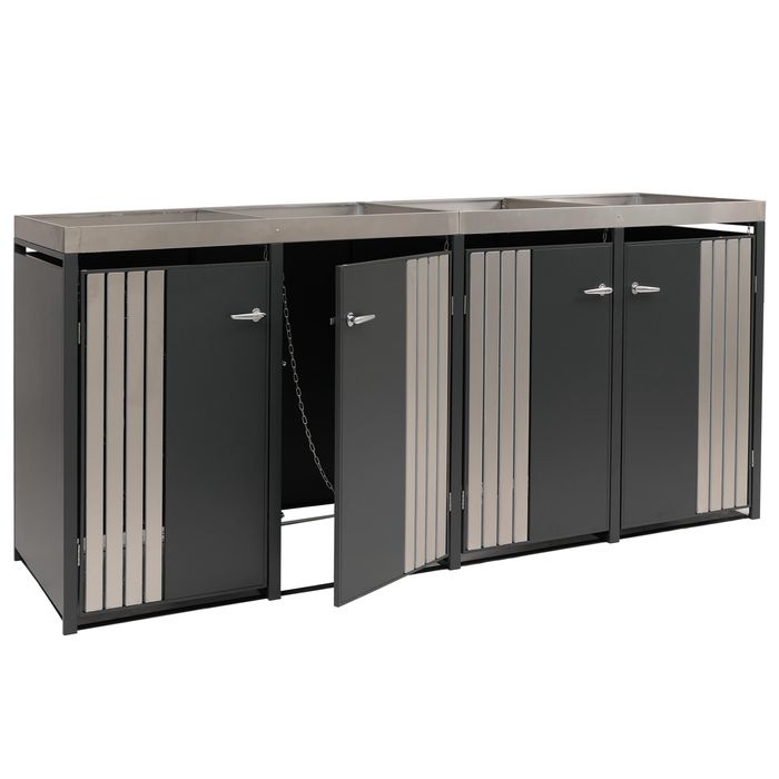 4er-Mülltonnenverkleidung HWC-O67, mit Pflanzkasten, Metall 125x260x84cm 95kg – anthrazit Edelstahl