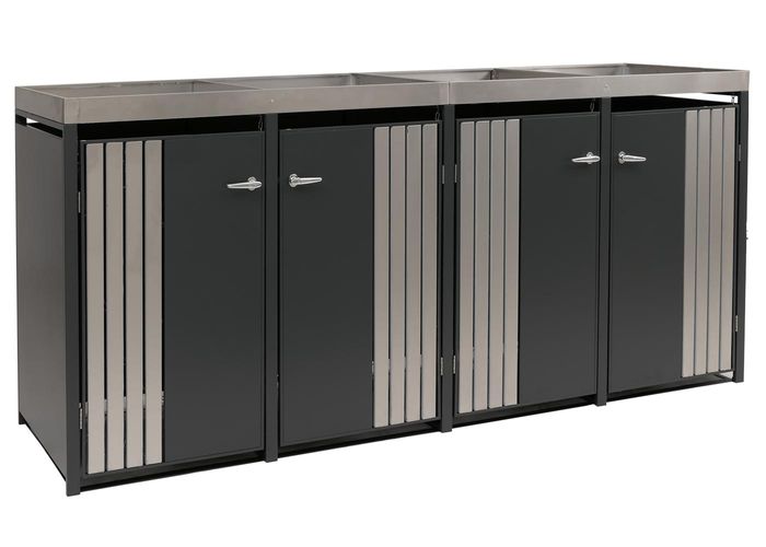 - Diese moderne Mülltonnenverkleidung ist nicht nur optisch ansprechend. Neben den abschliessbaren Türen und einem sehr stabilen Gehäuse ist diese Mülltonnenverkleidung mit einem Pflanzkasten ausgestattet.
