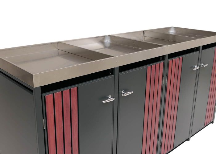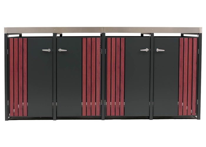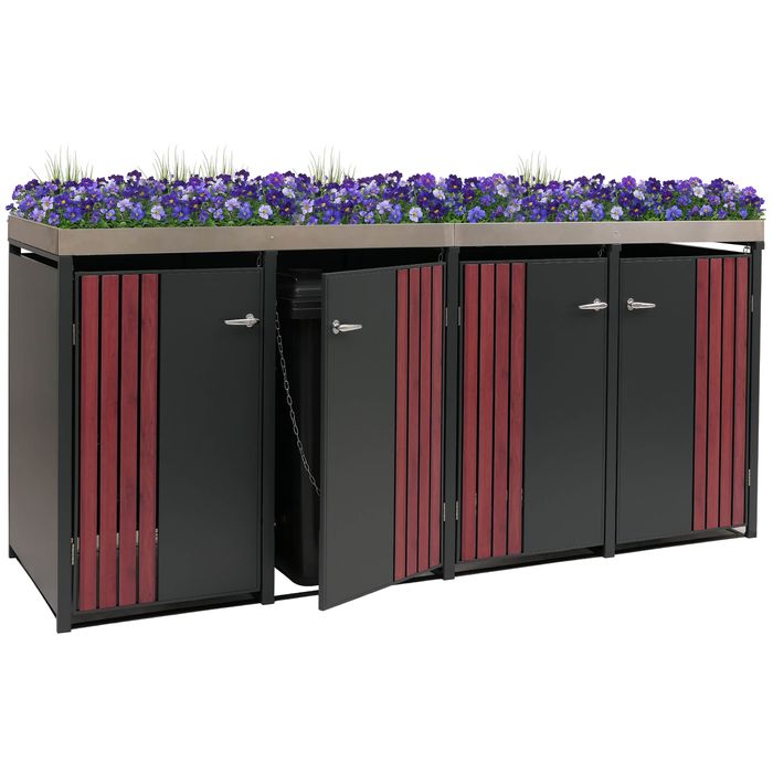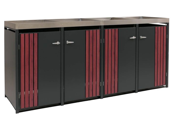 - Diese moderne Mülltonnenverkleidung ist nicht nur optisch ansprechend. Neben den abschliessbaren Türen und einem sehr stabilen Gehäuse ist diese Mülltonnenverkleidung mit einem Pflanzkasten ausgestattet.