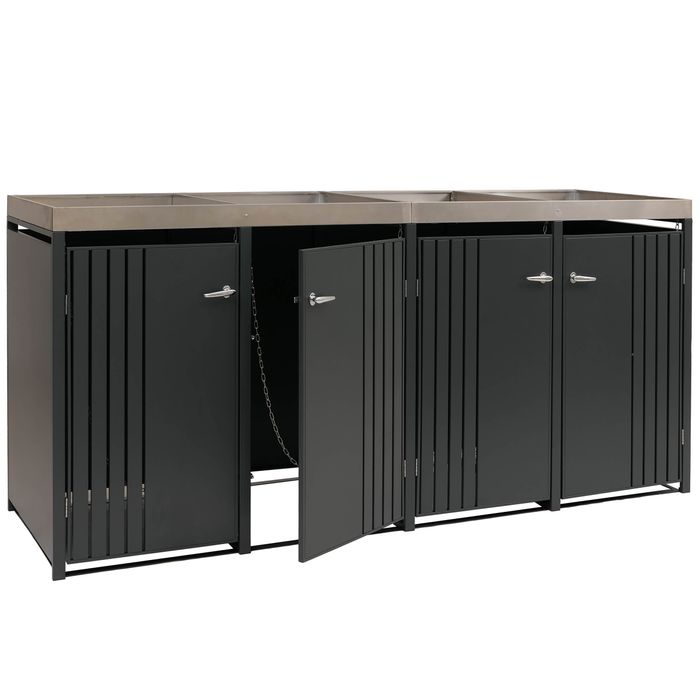 - Diese moderne Mülltonnenverkleidung ist nicht nur optisch ansprechend. Neben den abschliessbaren Türen und einem sehr stabilen Gehäuse ist diese Mülltonnenverkleidung mit einem Pflanzkasten ausgestattet.