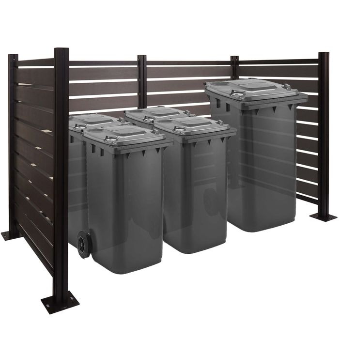 Sind Ihnen unschöne Mülltonnen ein Dorn im Auge? Dann haben wir die perfekte Lösung für Sie! Der Mülltonnen-Zaun hilft Ihnen dabei, Müllsammelstellen aus Ihrem Blickfeld stilvoll und praktisch verschwinden zu lassen. Dank des einfachen Stecksystems ist die Montage kinderleicht, während die stabile Konstruktion und die Vorrichtung für Betonverankerung für maximale Stabilität sorgen. Mit dieser stabilen Mülltonnenverkleidung lassen sich mühelos bis zu 8 Mülltonnen mit einem Fassungsvermögen von 60-80 Litern verstauen! Alternativ finden hier 3 Tonnen je 240 Liter oder grössere Müllcontainer ihren Platz. Verabschieden Sie sich von unansehnlichen Mülltonnen und entscheiden Sie sich für unseren Mülltonnen-Zaun!