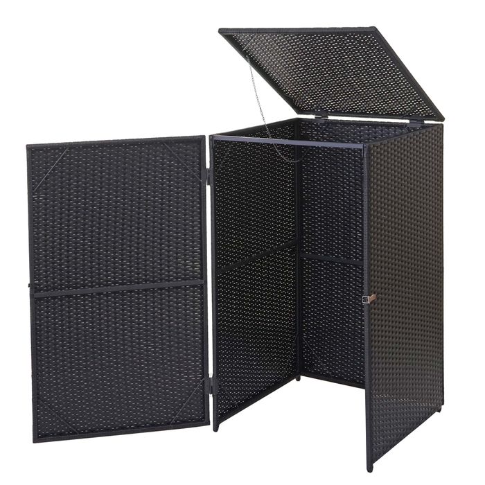 Mülltonnenverkleidung HWC-E25, Mülltonnenbox Mülltonnenabdeckung, Poly-Rattan 120l schwarz