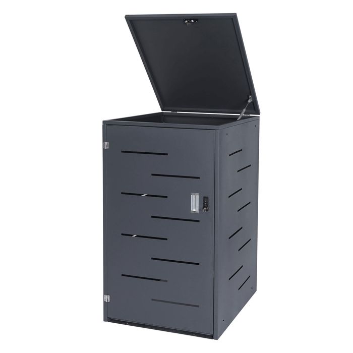 - Diese moderne Mülltonnenverkleidung, ausgestattet mit Belüftungsschlitzen ist nicht nur optisch ansprechend. Neben der Schliessfunktion der Schlösser lässt sich diese Mülltonnenabdeckung ganz einfach mit weiteren Modellen unserer Serie erweitern.