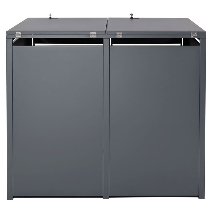 - Diese moderne Mülltonnenverkleidung ist nicht nur optisch ansprechend. Neben den abschliessbaren Türen und einem sehr stabilen Gehäuse, sind die Deckel dieser Mülltonnenverkleidung mit Gasdruckfedern ausgestattet.
