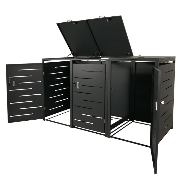 - Diese moderne Mülltonnenverkleidung, ausgestattet mit Belüftungsschlitzen ist nicht nur optisch ansprechend. Neben der Schliessfunktion der Schlösser lässt sich diese Mülltonnenabdeckung ganz einfach mit weiteren Modellen unserer Serie erweitern.