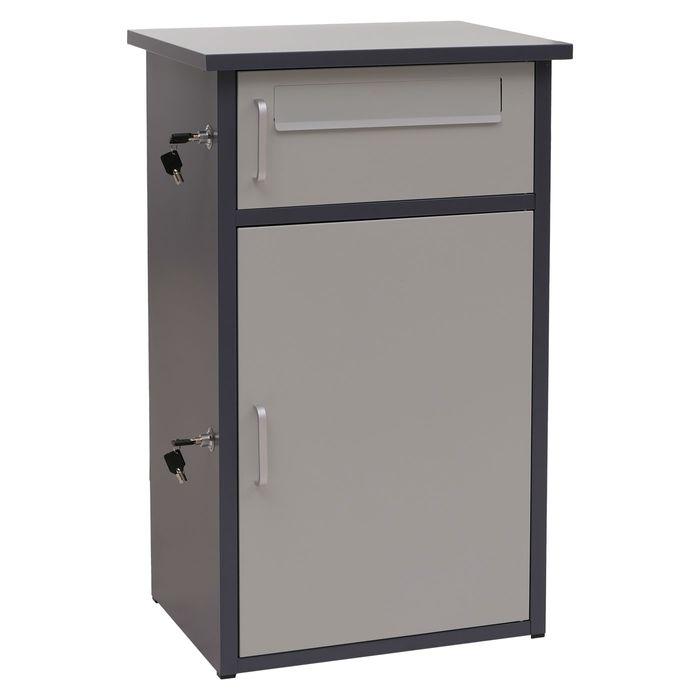 Der Paketkasten O51 vereint funktionale Sicherheit mit modernem Design und ist die perfekte Lösung für den Empfang von Paketen und Briefen - auch bei Abwesenheit. Mit zwei getrennten Fächern für Briefe und Pakete bietet er strukturierte Ordnung und schützt Ihre Sendungen zuverlässig vor Witterung und unbefugtem Zugriff. Beide Fächer lassen sich separat über ein seitliches Knopfdruck-System verriegeln, was die Sicherheit erhöht und ungewollten Zugriff verhindert. Im Lieferumfang sind vier Schlüssel enthalten, mit denen sich die Verriegelung zuverlässig entriegeln lässt - ideal für Familien oder Bürogemeinschaften. Der grosszügige Stauraum ermöglicht die Aufnahme von Paketen mit einer maximalen Grösse von 53x36x31 cm. Damit bietet der O51 auch für grössere Sendungen ausreichend Platz. Die dauerhafte Belastbarkeit beträgt bis zu 5 kg im Briefkastenfach und 10 kg im Paketfach - perfekt für den regelmässigen Versandhandel. Für eine sichere Montage lässt sich der Paketkasten stabil auf ebenem Untergrund wie Zement, Asphalt, Ziegel oder Holzboden fixieren. Bodenanker zur Befestigung sind im Lieferumfang bereits enthalten. Zusätzlich sorgt ein mitgeliefertes Kabel samt Bügelschloss für eine flexible Sicherung an z.B. einem Regenrohr - so bleibt Ihr Kasten auch im Aussenbereich zuverlässig vor Diebstahl geschützt. Das robuste Stahlgehäuse bietet Witterungsbeständigkeit sowie langlebige Qualität. Der Paketkasten O51 ist die ideale Lösung für alle, die ihre Sendungen sicher empfangen und gleichzeitig Ordnung, Schutz und eine einfache Handhabung geniessen möchten. Investieren Sie in Ihre Komfortzone - mit dem Paketkasten O51 wird Ihre Haustür zur sicheren Übergabestation.