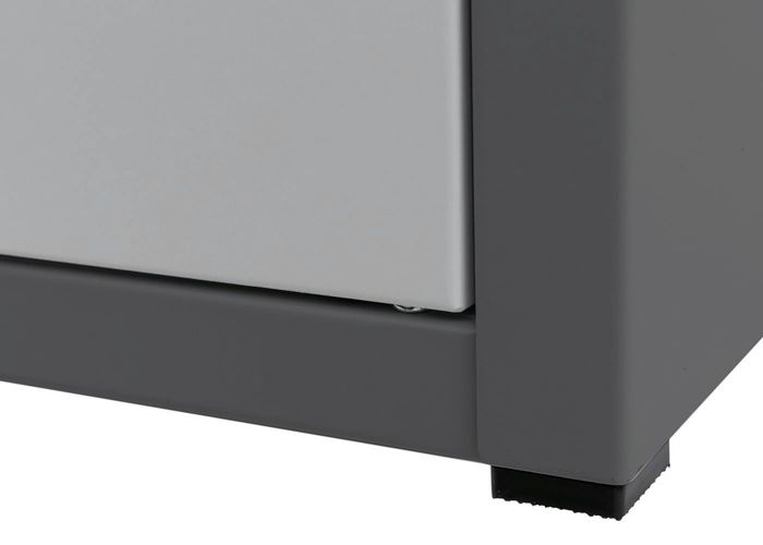 - Die Bodenbefestigung mit beiliegenden Ankern ermöglicht eine feste Fixierung auf ebenem Untergrund. Zusätzlich schützt ein Sicherungskabel mit Bügelschloss vor Diebstahl. Der Paketkasten O51 ist robust, wetterfest und ideal für den Aussenbereich.