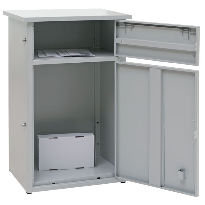 Paketkasten HWC-O51, Briefkasten 2 Fächer, Stahl 78x49x38cm – hellgrau