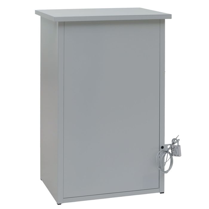 - Die Bodenbefestigung mit beiliegenden Ankern ermöglicht eine feste Fixierung auf ebenem Untergrund. Zusätzlich schützt ein Sicherungskabel mit Bügelschloss vor Diebstahl. Der Paketkasten O51 ist robust, wetterfest und ideal für den Aussenbereich.