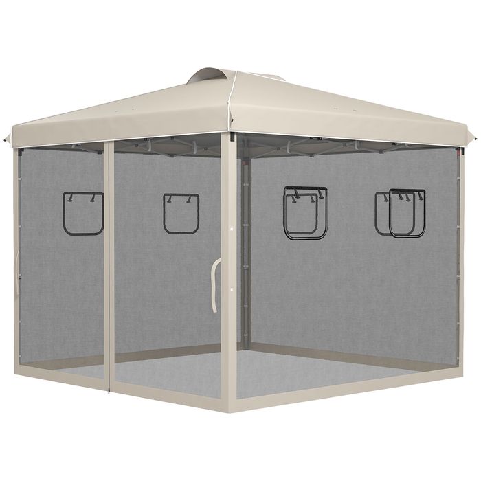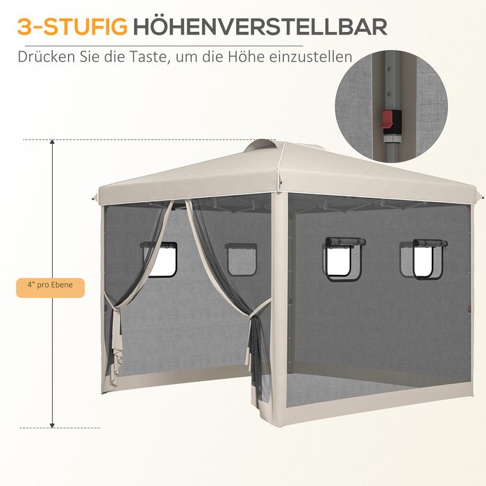 Faltpavillon, höhenverstellbar, Netzvorhänge, Tragetasche, Metallgestell, 3 x 3 x 3 m, Beige
