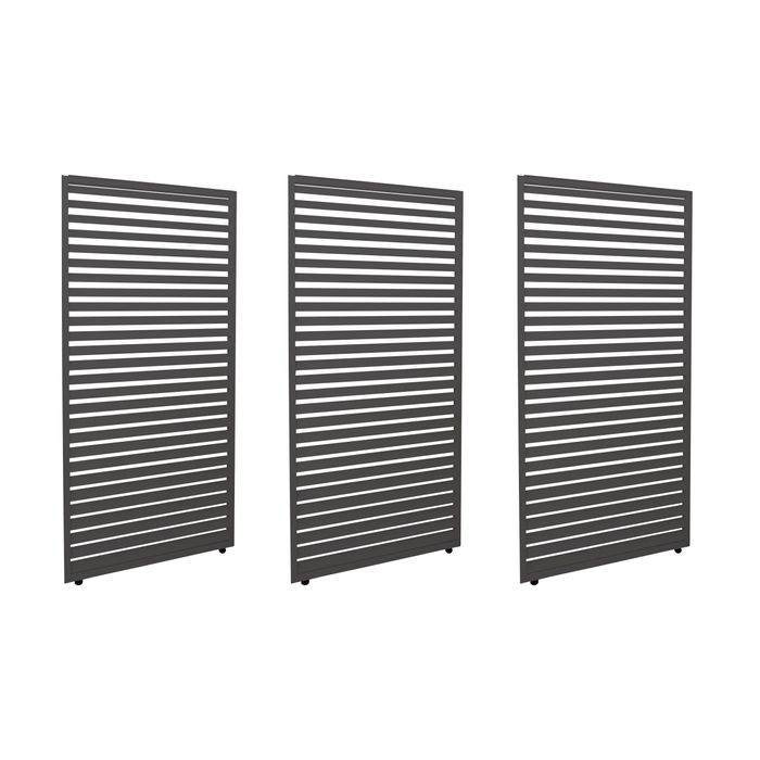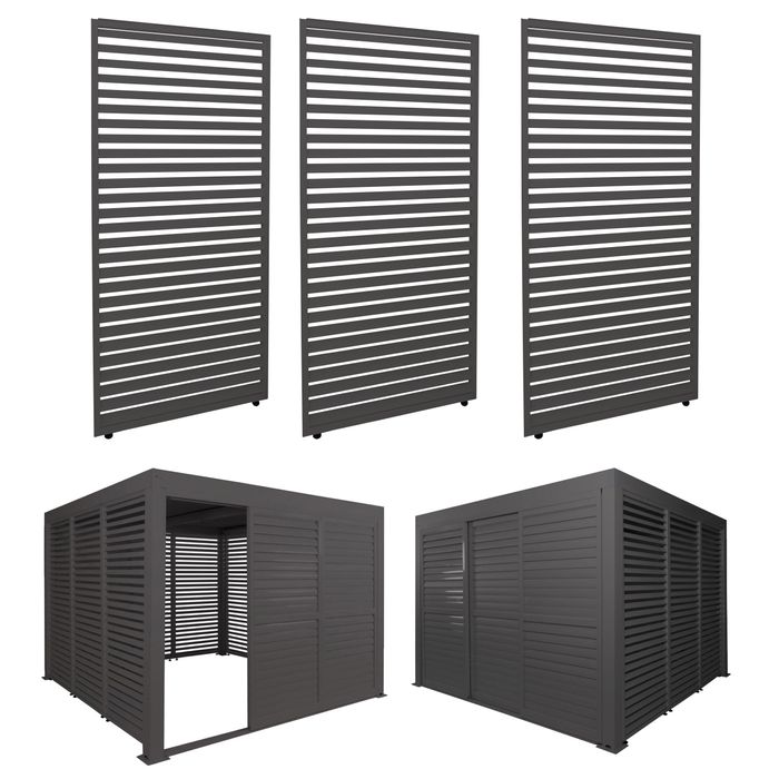 Verleihen Sie Ihrer Pergola L46 den letzten Schliff in Sachen Komfort, Schutz und Ästhetik mit diesem hochwertigen 3er-Set aus festen Aluminium-Paneelen. Massgeschneidert für die Terrassenüberdachung L46 mit den Massen 204x271 cm, bieten diese robusten Lamellenpaneel-Module nicht nur ein modernes Erscheinungsbild, sondern auch zuverlässigen Sicht- und Windschutz für entspannte Stunden im Freien – ganz unabhängig vom Wetter. Die drei festen Paneele sorgen für einen geschützten Rückzugsort und schaffen eine klare Abgrenzung, ohne das Gesamtbild Ihrer Pergola zu stören.
