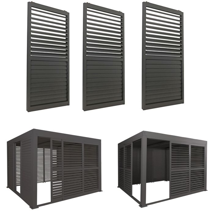3er-Set Aluminium Schiebetür für Pergola HWC-L46, Lamellenpaneel Modul, 206x272cm – anthrazit