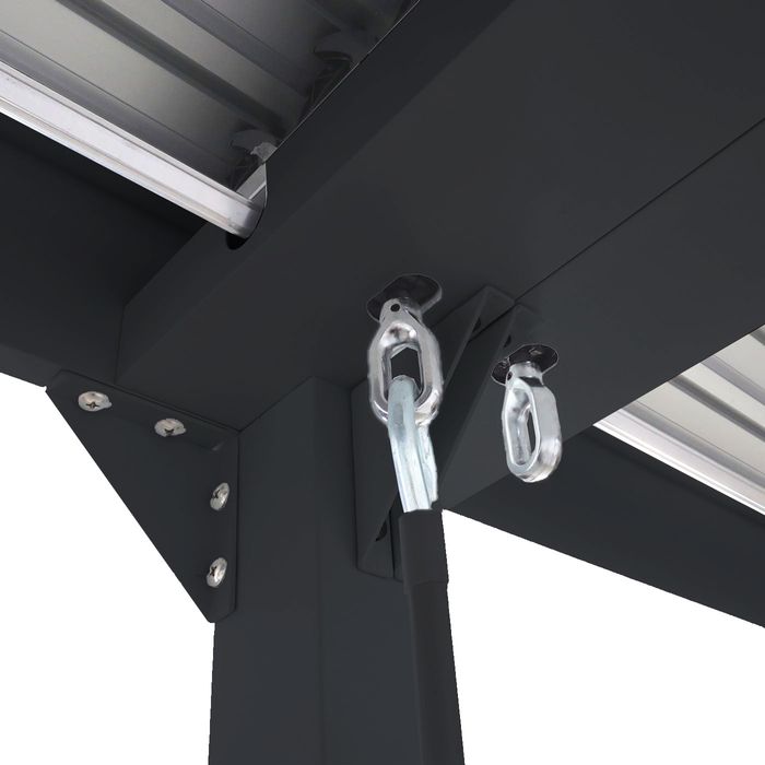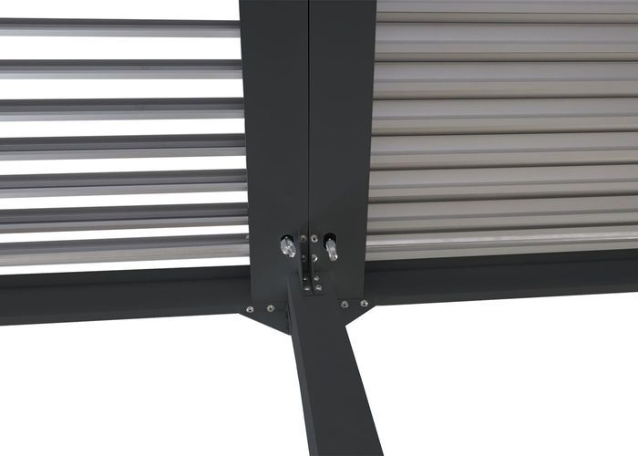 - Neben der hohen Stabilität zeichnet sich diese Pergola durch das praktische Lamellendach aus. Dank der Kurbel lassen sich die Lamellen manuell öffnen und Sie können ganz nach Ihren Wünschen die Sonneneinstrahlung optimal regulieren.