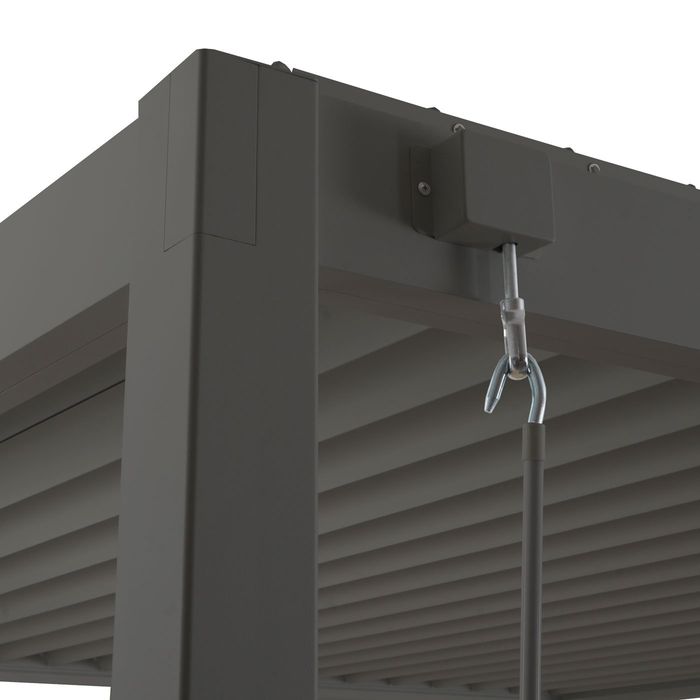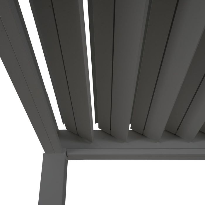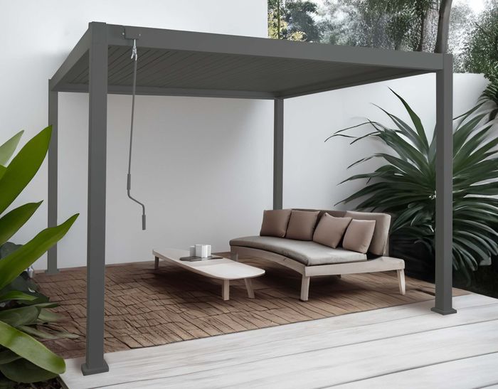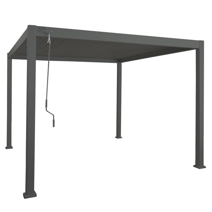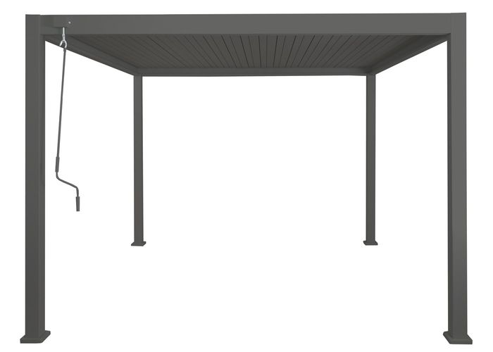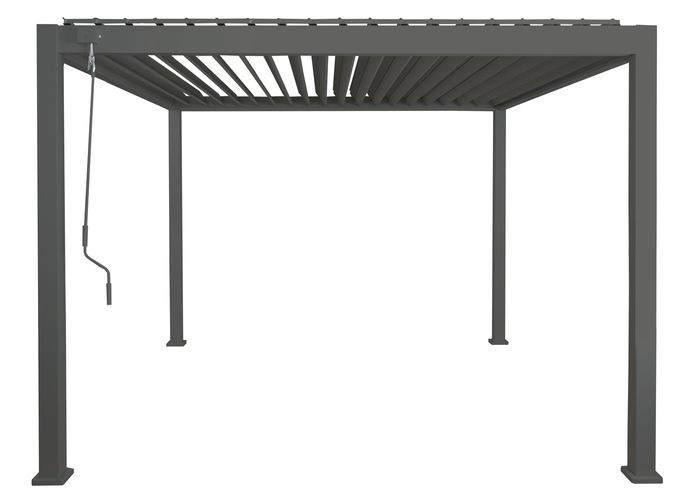 - Neben der hohen Stabilität zeichnet sich diese Pergola durch das praktische Lamellendach aus. Dank der Kurbel lassen sich die Lamellen manuell öffnen und Sie können ganz nach Ihren Wünschen die Sonneneinstrahlung optimal regulieren.