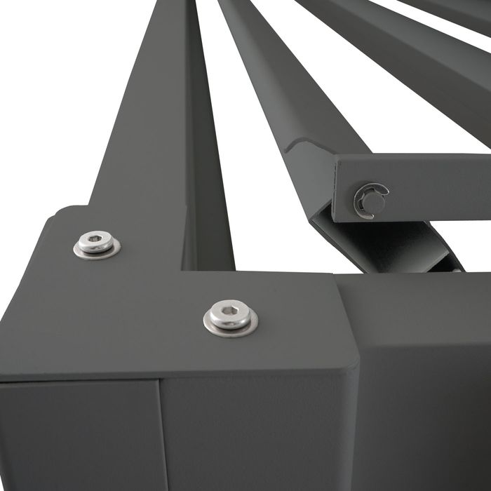 Bitte beachten Sie: Im Winter empfehlen wir, die Lamellen geöffnet zu haben, damit sich kein Schnee darauf anhäuft. Diese Pergola ist nicht sturmfest.