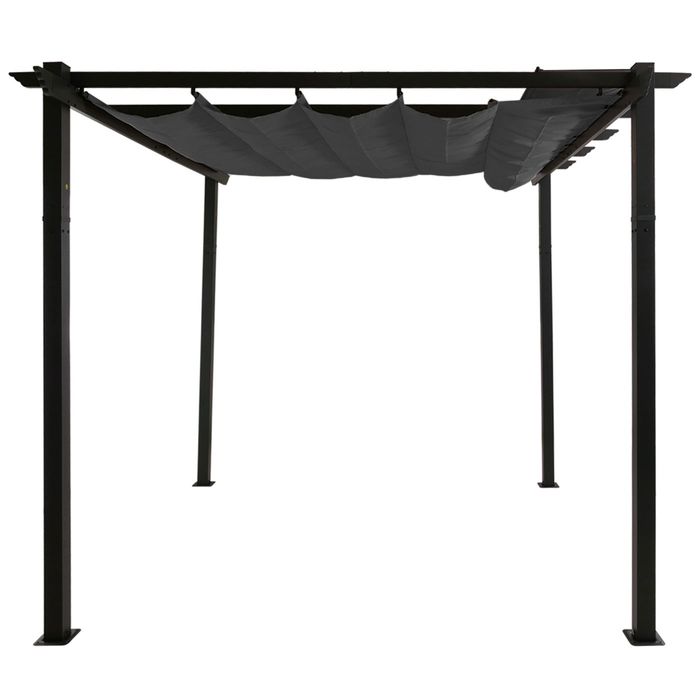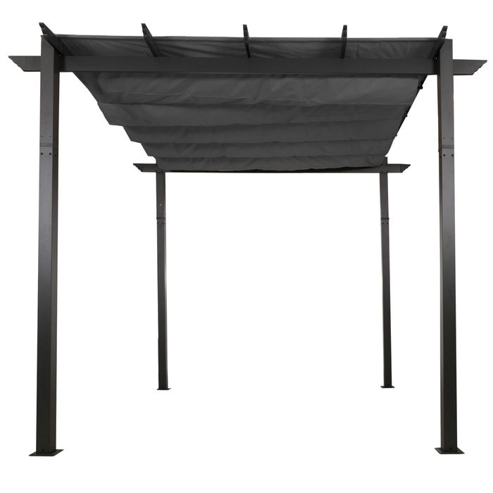 - Die Aluminium Pergola N93 überzeugt mit einem stabilen 8 cm starken Gestell und einem 180 g/m² Stoffbezug mit wasserdichter Beschichtung. UV50+ Schutz bietet optimale Abschirmung vor Sonneneinstrahlung. Das Schiebedach ist stufenlos per Textilhandgriff regulierbar und flexibel anpassbar.