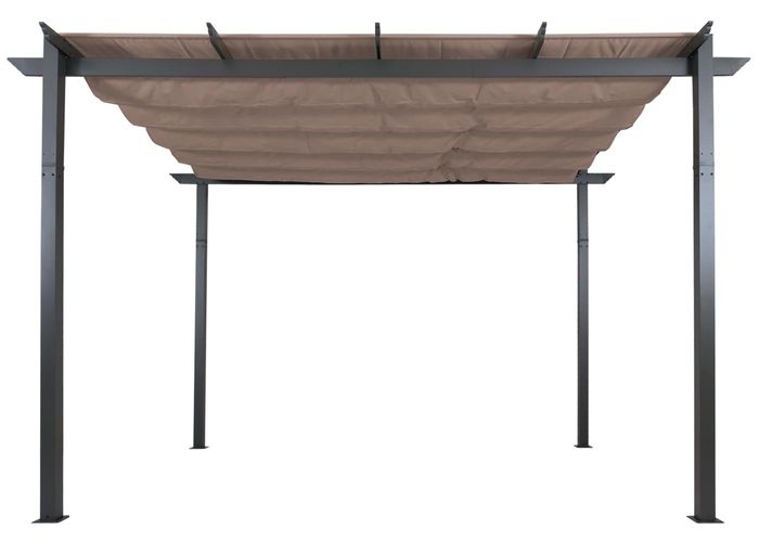 Aluminium Pergola HWC-N93, stabiles 8cm-Gestell Schiebedach UV50+ 3x4m – taupe