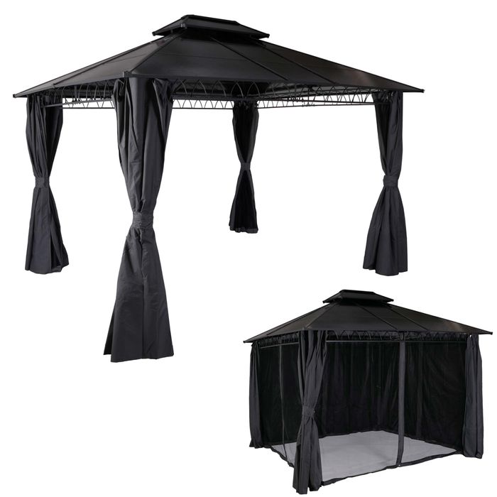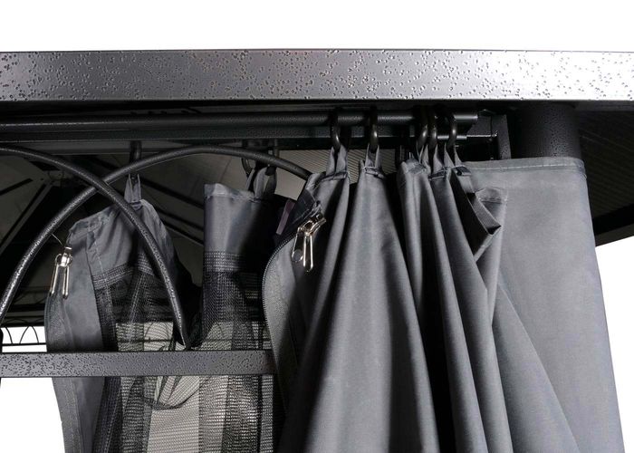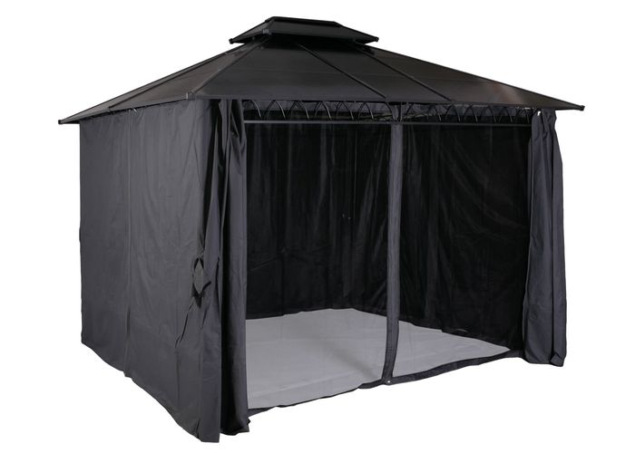 - Mit diesem Garten Pavillon freuen Sie sich auf die Sommertage im Freien. Dank dieser Pergola mit Seitenwand sind Sie nicht nur vor UV-Strahlung und Regen, sondern auch vor Wind geschützt. Dieser Pavillon macht auch heisse Sommertage angenehmer.