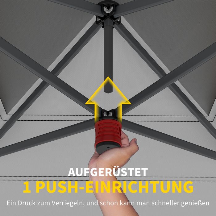 - 3-fach höhenverstellbar: Das Druckknopfsystem des Pavillons ermöglicht drei werkzeugfreie Höheneinstellungen mit 10 cm Abstand, individuell anpassbar an Gelände oder Anforderungen, für mehr Flexibilität und Komfort.
