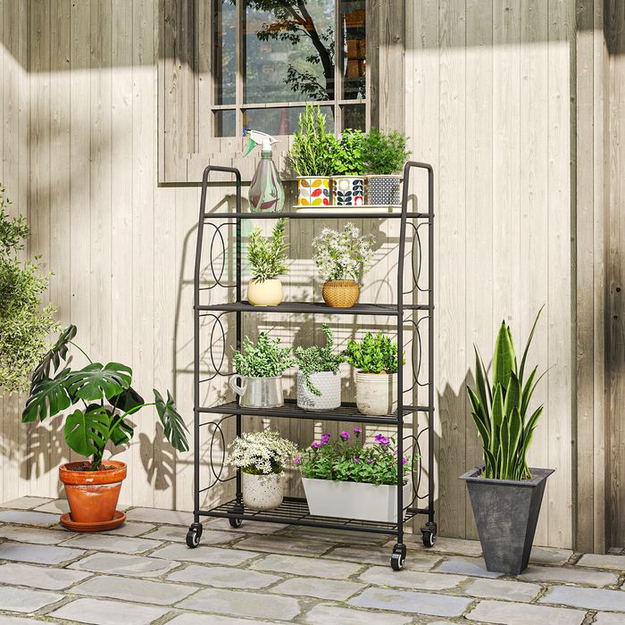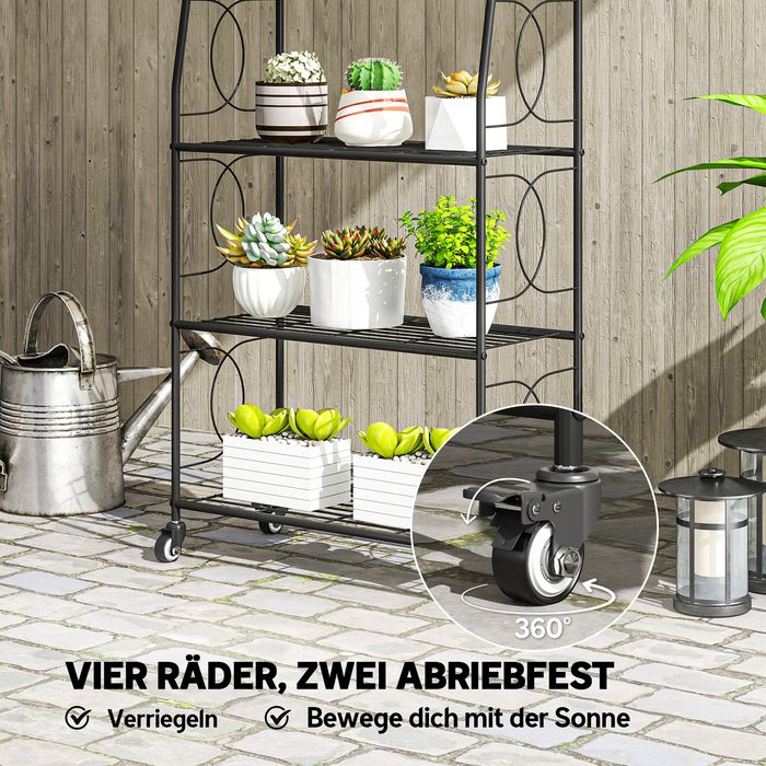 Pflanzenständer aus Metall, 4 Ebenen, robust, feststellbare Rädern